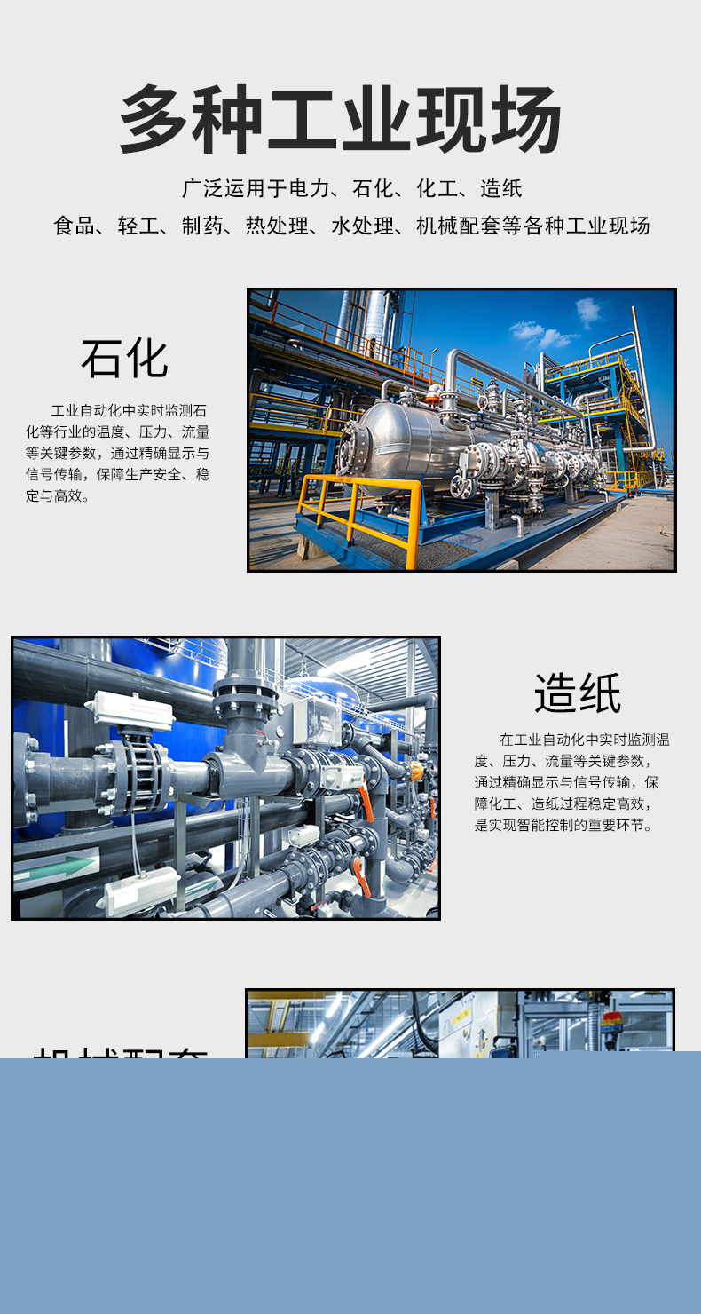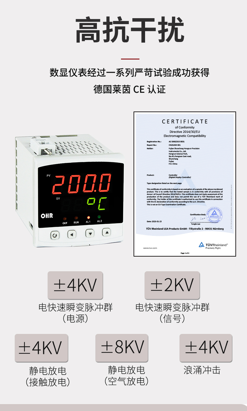 虹潤公司是專業生產數顯表的國家專精特新“小巨人”企業,生產的簡易單路數顯表,具有全切換信號輸入,多種外形尺寸,高抗干擾,輸入/輸出/電源三隔離,性價比高等特點。該產品不僅通過德國萊茵 CE 認證,還獲得巡回檢測顯示方法及裝置、儀表殼體等2項國家發明專利,主持起草工業過程控制系統用模擬輸入兩位或多位輸出儀表、物聯網智能溫度儀表通用技術條件等2項國家標準,參與國際5G標準制定,取得簡易數顯儀表等3項相關軟件著作權。產品廣泛應用于電力、石化、冶金、化工、造紙、食品、輕工、制藥、熱處理、水處理、機械配套等各種工業現場。