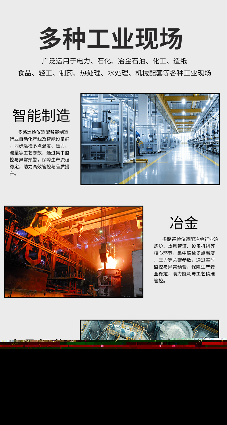 虹潤公司是專業生產多路溫度巡檢儀的國家專精特新“小巨人”企業,生產的多路巡檢儀,具有8路/16路測量通道,全切換信號輸入,多種輸出類型,高抗干擾,RS485/RS232通訊等特點。產品獲得巡回檢測顯示方法及裝置、儀表殼體等2項國家發明專利,主持起草工業過程控制系統用模擬輸入兩位或多位輸出儀表、物聯網智能溫度儀表通用技術條件等2項國家標準,參與國際5G標準制定,取得多回路測量顯示控制儀等3項相關軟件著作權。產品廣泛應用于電力、石化、冶金、制藥、水處理、機械配套等各種工業現場。