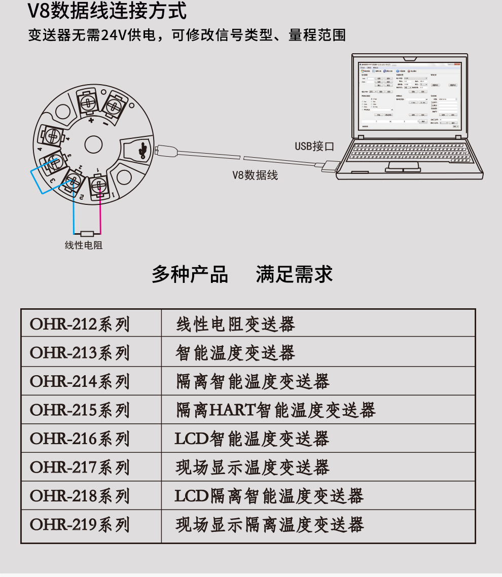 OHR-212線性電阻(磁翻板)變送器,用于線性電阻信號輸入,二線制4~20mA模擬輸出,安裝于傳感器內(nèi)部(Form B)。
