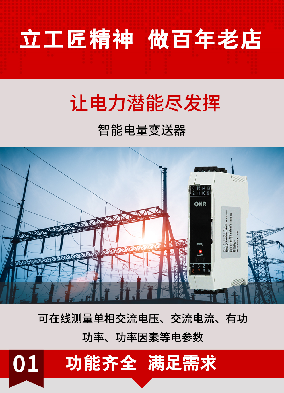 OHR-D4系列智能電量變送器是一款高性價比的智能電參數(shù)變送器,它能替代過去傳統(tǒng)的電流、電壓、功率、 功率因數(shù)、電量等一系列變送器,降低系統(tǒng)成本,方便現(xiàn)場布線并提高系統(tǒng)的可靠性。