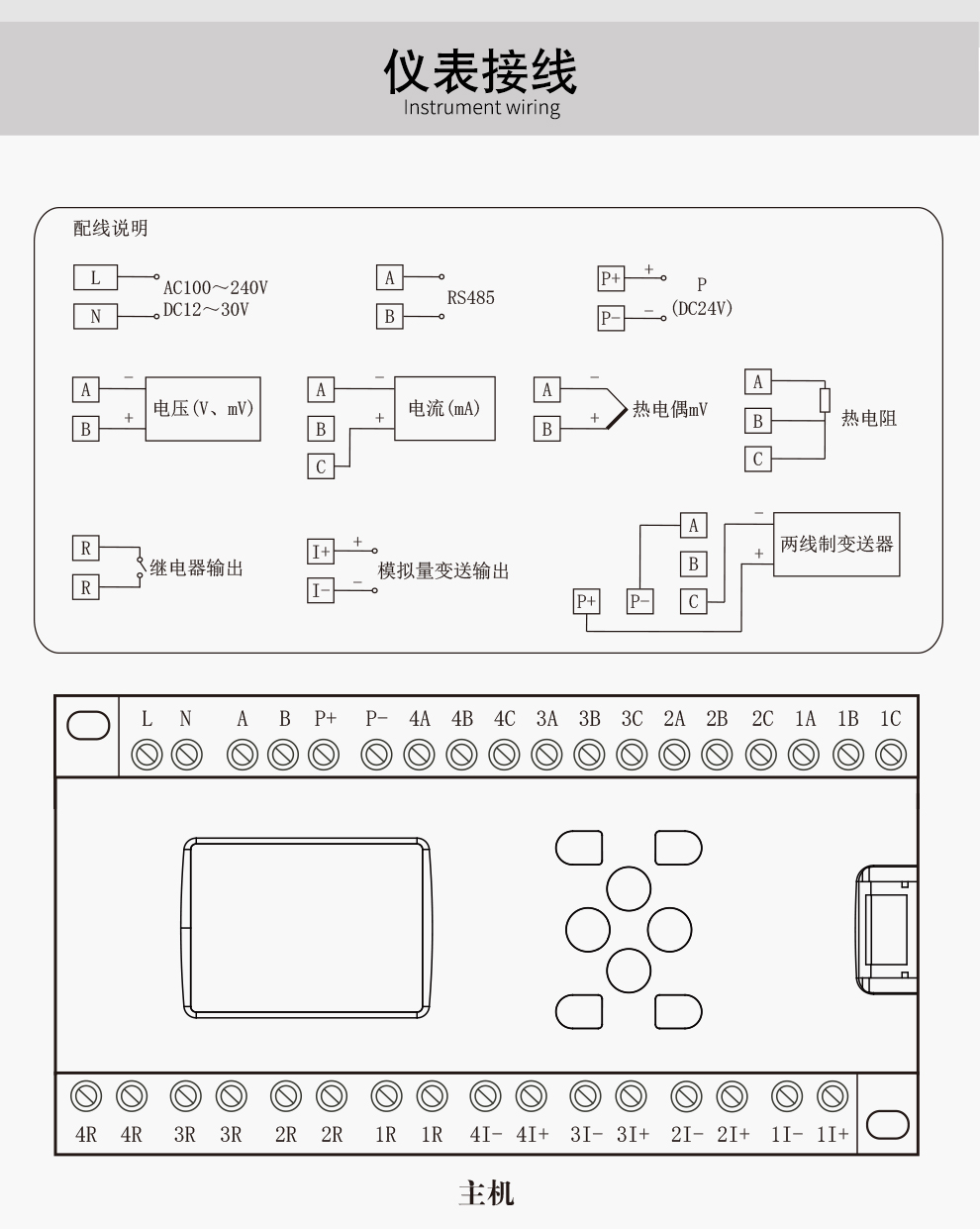 OHR-PR40系列數(shù)據(jù)控制器多重保護(hù)和隔離設(shè) 計(jì),抗干擾能力強(qiáng),可靠性高。儀表采用主副機(jī)結(jié)構(gòu)設(shè)計(jì),主機(jī)可提供4路萬能信號輸入,通道間 相互隔離;4限報(bào)警輸出、4路變送輸出,饋電輸出、RS485通訊、以太網(wǎng)通訊等功能,連接副機(jī)可將I/O容量 擴(kuò)展至8路輸入和8限報(bào)警輸出、8路變送輸出。